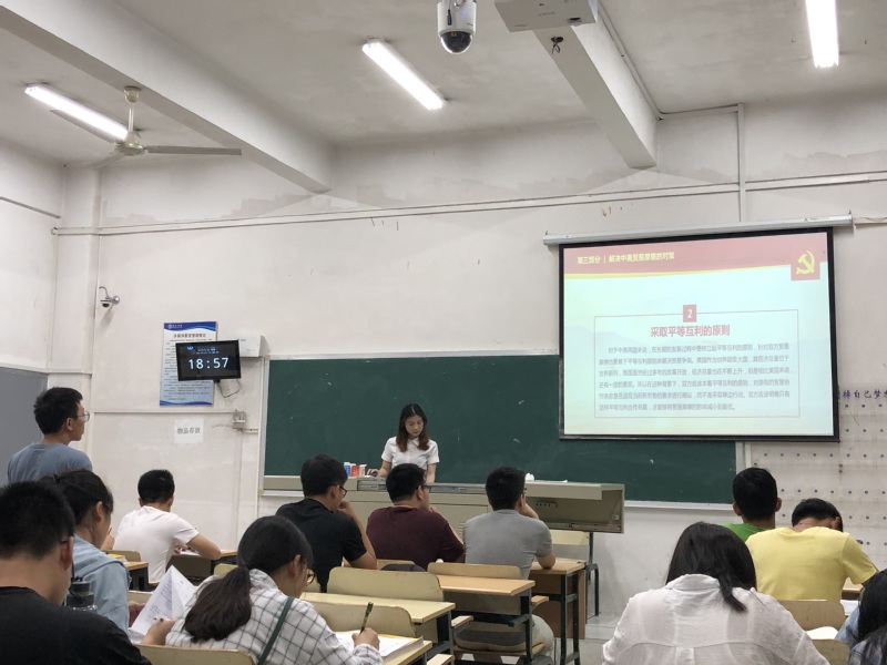 5月20日,WilliamHill体育灯塔党员服务站微党课小分队结合当下中美贸易摩擦问题,在公司教学楼开展“聚焦中美贸易,衍生思维模式”的时政党课活动。