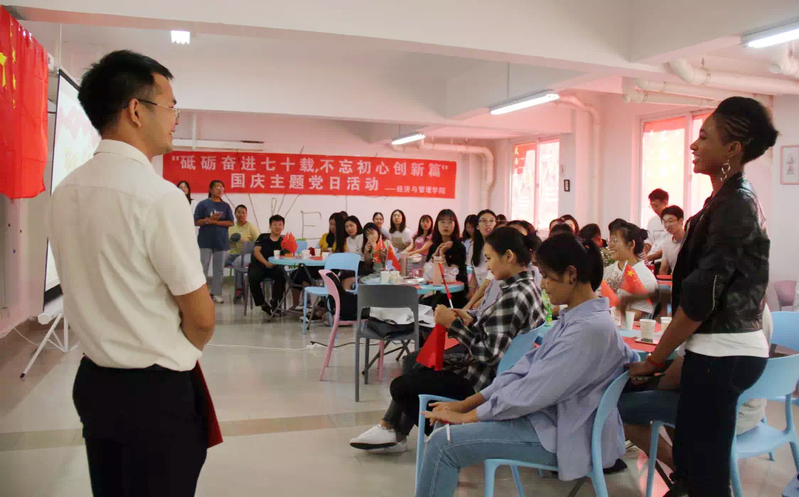 来自喀麦隆的18级国贸专业职工赵沫生谈到:“我来中国已经两年了,非常开心今天有机会和大家一起欢度新中国的七十岁生日。我想说,中国真的是非常强大的国家,中国军人威武雄壮,霸气十足,我很庆幸自己能来中国、能来WilliamHill体育留学,我不后悔在这里学习,我祝中国生日快乐Happy 70th anniversary China。”