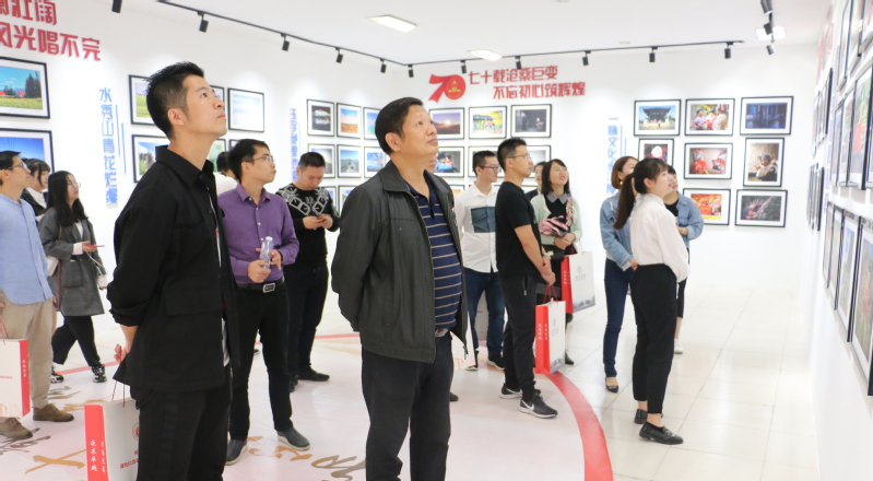 员工们还参观了于教学楼举办的关于庆祝中华人民共和国成立70周年的主题摄影展,在讲解员的讲解中,他们感受了祖国的大好风光与充满韵味的风土人情,连连对这些作品表示赞叹,对中华人民共和国成立七十周年华诞表示了真切地祝福,并在观展后合影留念。同时,他们还前往校史馆聆听解说。