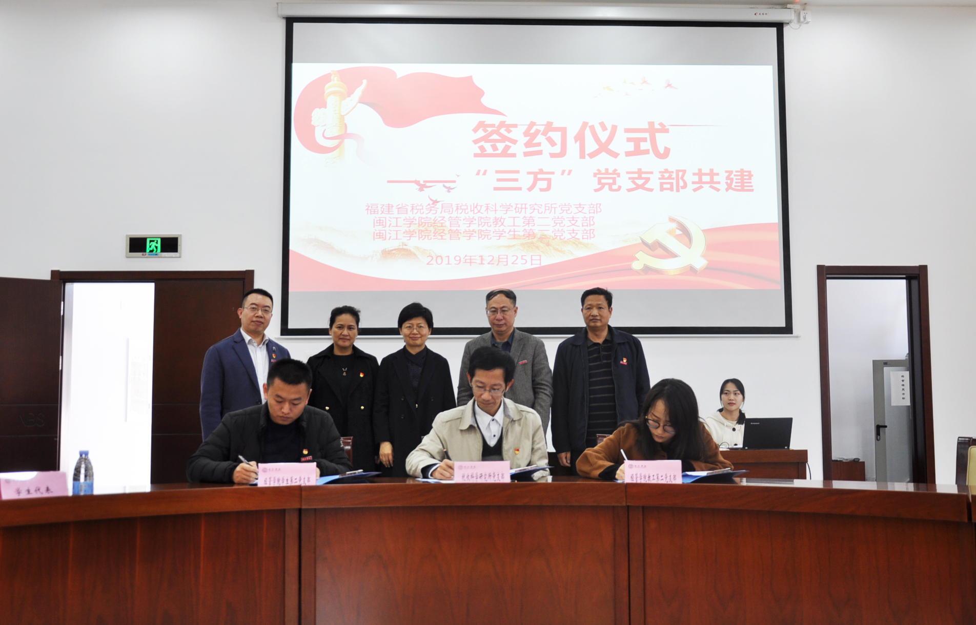 福建省税务局税收科学研究所党支部与公司教工第二党支部、员工第二党支部在“三方”党支部共建签约仪式上,秉持优势互补、资源共享、问题导向、整体推进的原则,三方协商结为共建单位并签署协议,未来将在组织建设互促、党员干部互动、党建载体互用、结对帮扶互动四个部分开展共建结对工作。