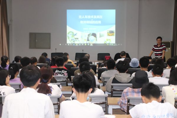活动伊始,周晓光教授通过播放无人机相关视频吸引了同学们的注意,指出新石器无人机,其实就在大家的身边,在校园、工厂,甚至在社会上都有被运用,不同类型的无人车,能够满足大家的各种需求。而无人驾驶汽车,是高技术的融合,是科技水平提高的重要标志,并且无人车技术也获得国内外多方的认可。随着电子商务的飞速发展促进了快递物流的发展,而快递业务量的递增也给社会的发展带来了许多问题,比如人力不足、车资源短缺,传统的物流运输方式低效无序,甚至存在安全隐患,为此,周教授在会议上提出应采用共同配送、无人车配送的解决方案。无人车在物流领域的应用为智慧物流时代的开启奠定了基础。