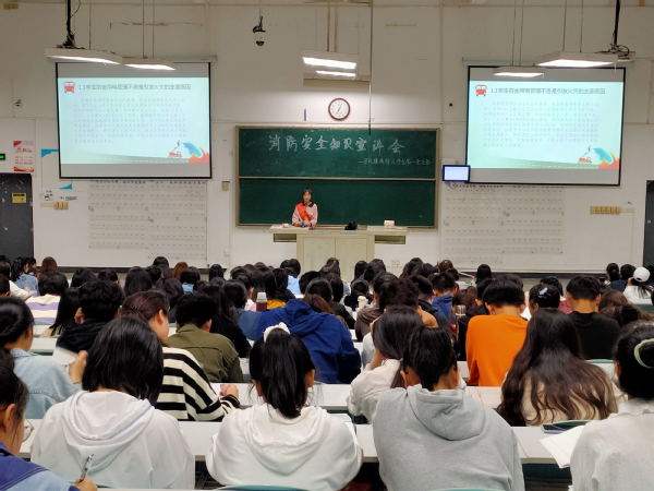 在习近平总书记向国家综合性消防救援队伍授旗致训词两周年和第29个全国“119”消防日到来之际,为响应国家的号召、全力打造平安校园、进一步提高员工消防安全意识和自防自救能力,11月9日晚7点,公司员工第一党支部安全督导小分队和员工会学风建设部于2A108教室联合举办“消防知识牢记心,幸福安全伴随行”的主题宣讲会议。会议由公司员工第一党支部的陈林蓉主持,2020级新生参与。