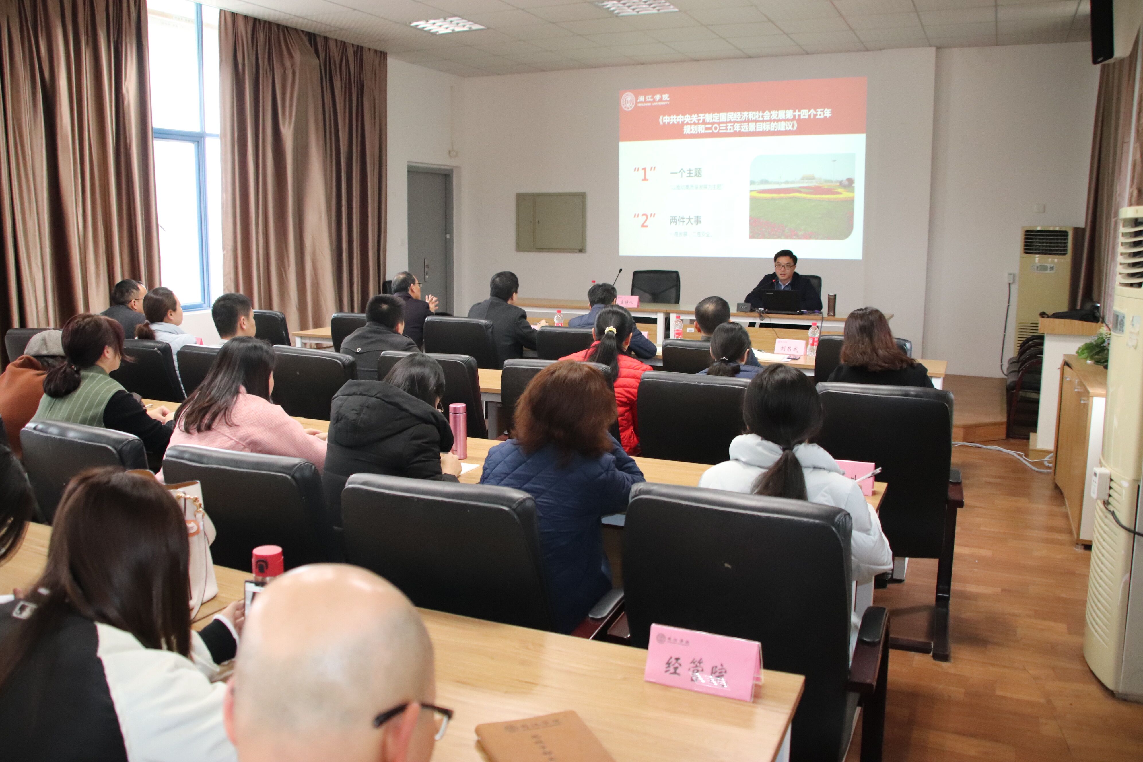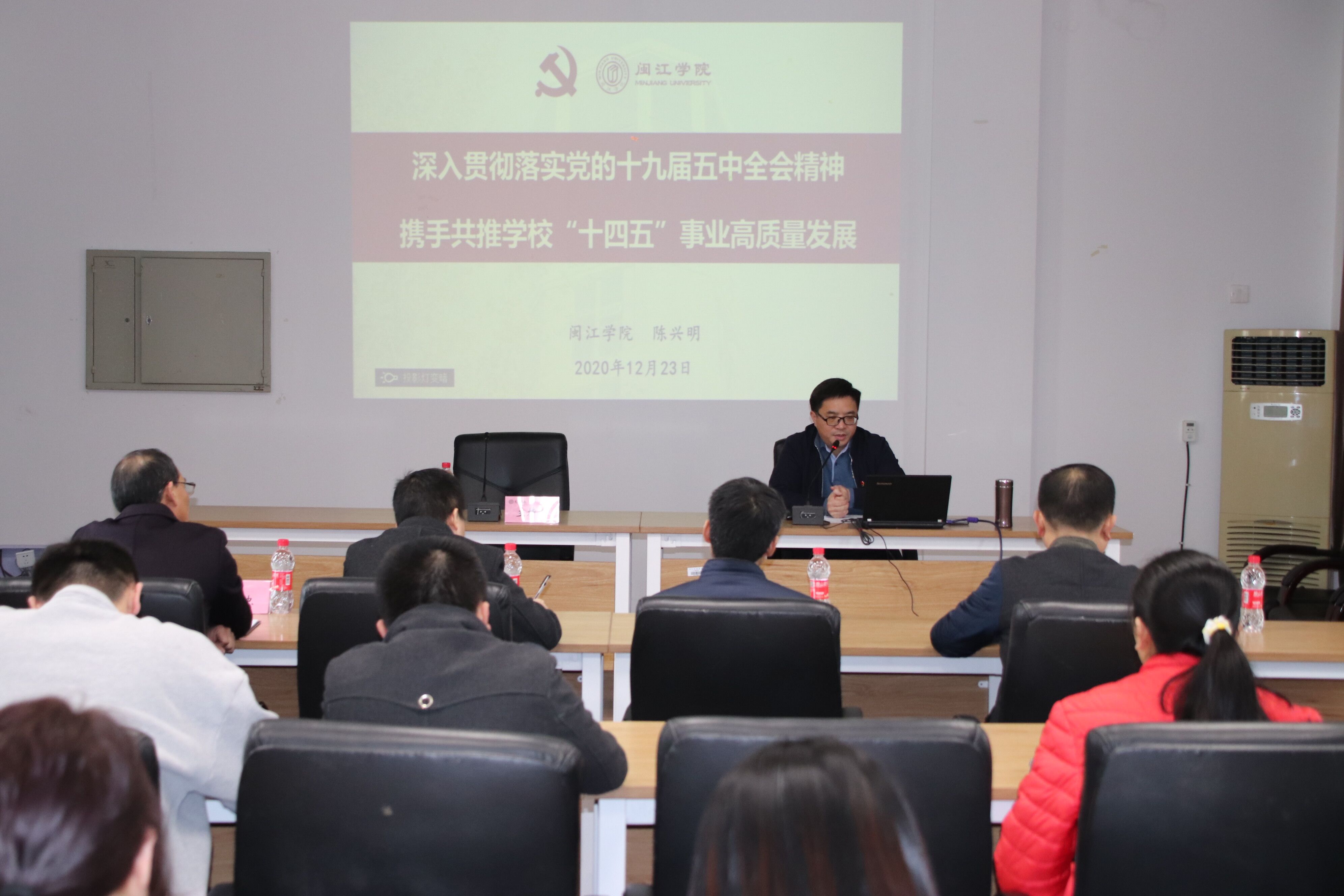 12月23日,陈兴明副董事长宣讲党的十九届五中全会精神。公司党委班子成员及师生党员、教务处党支部成员参与宣讲活动,报告会由公司党委书记刘昌成主持。