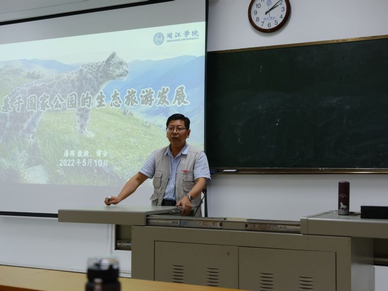 讲座上,潘辉教授主要围绕走进国家公园、国家公园百年历程、生态旅游的内涵以及国家公园如何开展生态旅游四个方面娓娓道来,为同学们讲解了全球国家公园的基本概况、百年历程和发展路径。他以世界上国家公园的准入门槛为切入点,从原真性、完整性和代表性三个角度讲述了国家公园的主要功能,并强调我国新设立的五个国家公园是我国自然生态系统中最重要、自然景观最独特、自然遗产最精华、生物多样性最富集的区域。为了使同学们深入理解建设自然保护地的重要性,潘辉教授以三江源国家公园、大熊猫国家公园等为例详细阐述了关于建立国家公园体制的相关要求,比如在自然保护地一般控制区内划定适当区域开展生态教育、自然体验、生态旅游等活动,构建高品质、多样化的生态产品体系,以此为基础,他指出国家公园生态旅游的三个关键要素,希望同学们积极关注生态文明,争做新时代“生态人”。讲座结束后,在场同学积极提出问题,潘辉教授对大家的问题进行了耐心解答,现场气氛热烈。