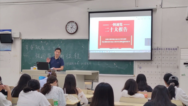 师生共研学,赤心同向党。10月16日,2021级国际商务一班团支部邀请马克思主义公司李超教授共同观看党的二十大开幕会。李超教授带领同学们回顾党的十九大以来国家在政治、经济、生态、科技和军事等方面取得的重大成就和重要历史意义,鼓励员工主动把个人理想融入民族复兴的时代洪流,融入社会建设的发展大局,融入履行岗位职责的具体实践,在报效祖国、奉献社会、服务发展中奋力拼搏,实现理想抱负,创造人生价值。