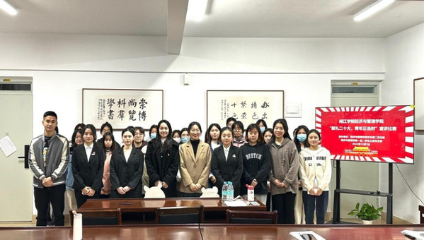 公司党委把学习宣传贯彻党的二十大精神作为当前和今后一个时期的首要政治任务,引导师生把思想和行动统一到贯彻落实党的二十大精神上来,从党的二十大精神中感悟思想伟力、汲取奋进力量,踔厉奋发、勇毅前行,为努力培养志怀经纬、精于术业、敢于创新的应用型新经管人才而团结奋斗。