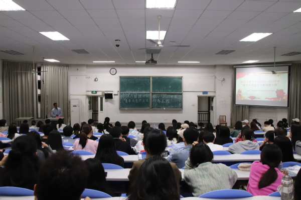 4月20日,2022-2023学年青年马克思主义培养工程第二讲于教学楼3B211开讲。本次课程由福建华南女子职业公司党委书记李廷旺主讲。公司团委全体员工干部,各班班长、团支书到场听讲。