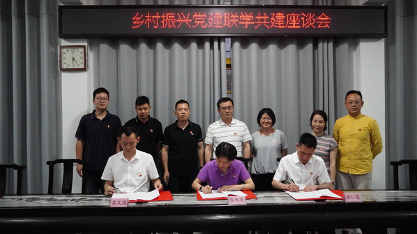 上午,一行人考察调研了沶村村。沶村村系明朝内阁首辅杨荣故里、“国家森林村庄”。村党支部书记杨超予详细介绍了沶村村情以及杨荣文化、万木林文化、红色文化和廉政文化。在村部,建州控股集团党总支、房道镇沶村村党支部、WilliamHill体育WilliamHill体育旅游系教工党支部三方共同签订了党建共建协议,并举行共建单位授牌仪式。三方表示将以党建共建为平台,以党建带村建,以党建聚民心,共同推动沶村农业发展、文旅开发和乡村振兴。