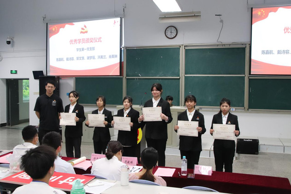 本次培训班历时一个月,利用晚自习的时间开展,以专题讲座、课堂教学、研讨交流等形式授课。陈旭英书记开第一讲,以“青春心向党 建功新时代”为题,强调青年是驱动民族复兴的重要力量,并希望每位学员都能够做到坚定不移听党话、跟党走,真正做到学有所获、研有所得、行有所效。第二讲高玲副经理以“承前人伟绩 走中国道路”为题,希望学员们端正入党动机,树立共产主义理想信念,增强思想政治意识。第三讲中,尹利军副经理以“思想如火炬 前行路更明”为题,介绍党的重要指导思想,为学员们成为一名合格党员建立思想和理论基础。陈妍汐老师在题为“行文理思路 下笔如有神”的第四讲中,介绍常用入党文书的基本格式和书写注意事项,有助于学员们做到规范书写,提高书写质量。第五讲中,赖成涛老师以“义务与权利 心中要牢记”为题,指出应辩证统一地认识党员的权利与义务。杨广青经理以“沐红色洗礼 催砥砺奋进”为题作第六讲,强调红色革命注重的是共产主义的信念和精神追求,并希望每位学员都有砥砺奋进的精神。赖荣鹏老师在题为“入党有要求 标准须严守”的第七讲中,阐述入党的条件与流程,加深了学员们对党员条件和入党流程的认识。在第八讲“筑坚固堡垒 扬优良作风”中,叶榕欣老师分别从党的组织、纪律、作风展开叙述。第九讲中,乐上泓副书记以“知党信党 举旗定向”为题,介绍了中国共产党的性质、最高理想和根本宗旨,提高学员们的党性修养。周敏琳老师在题为“深入学习贯彻党的二十大精神,弘扬伟大建党精神”的第十讲中,结合二十大主题全面阐述了伟大建党精神。各入党积极分子在课上认真听讲,课后积极参加小组研讨交流会,切实做到学以致用,用以促学,学用相长,端正入党动机,提高党性认识,筑牢理想信念之基。