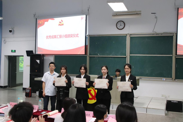 结业仪式上,16个小组的代表上台汇报本次培训的心得与收获。汇报结束后,辅导员老师们分别为结业的入党积极分子颁发结业证书,并对优秀学员、优秀学习小组、优秀成果汇报小组进行表彰。许雪峰副书记对各小组的汇报展示作出点评,针对汇报的成果内容、PPT制作、演讲状态提出改进建议,并对同学们提出筑牢理想信念根基、强化责任担当意识、发挥先锋模范作用的希望。