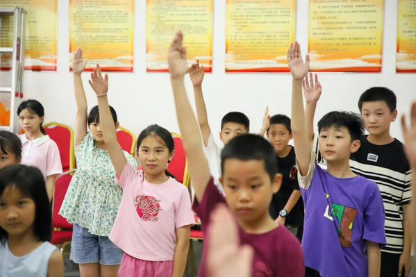 “‘红小鬼’们临危不乱,利用他们个子小、行动灵活的优势,与敌人进行巧妙周旋。”小学班的林溢涵同学在结营仪式上讲述永安红色抗战故事《“红小鬼”宣传队》,作为“厚德”模块的支教成果汇报演出。