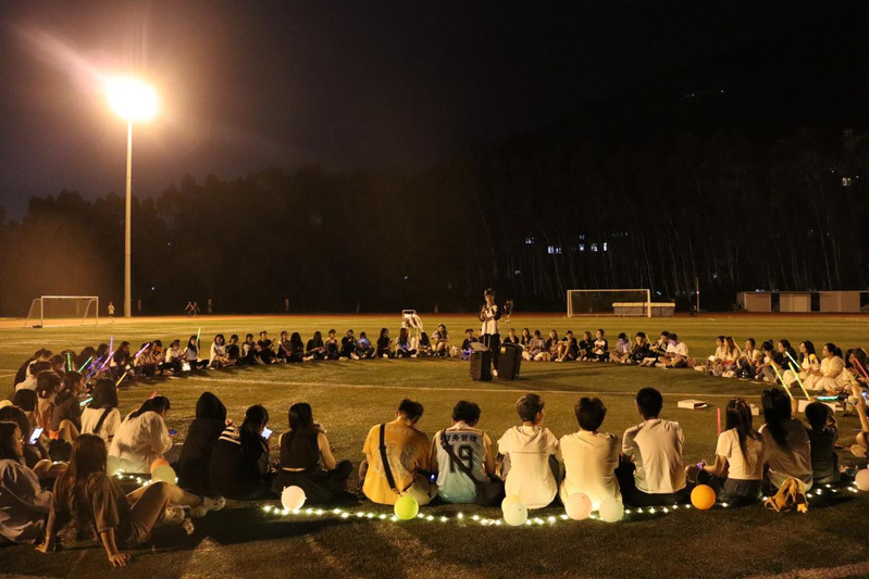 10月2日,公司举办“唱响青春”草坪音乐节活动。星光闪烁的夜空下,同学们围坐在草坪上,欣赏各年级留校同学带来的精彩歌曲演唱,挥舞的手机灯光仿佛夜空中的繁星点点。凉凉的微风变得柔和,激情的热血涌动全身。活动最后,大家一起高歌《我和我的祖国》,真情融化成音符,诉说着对祖国的热爱与祝福。