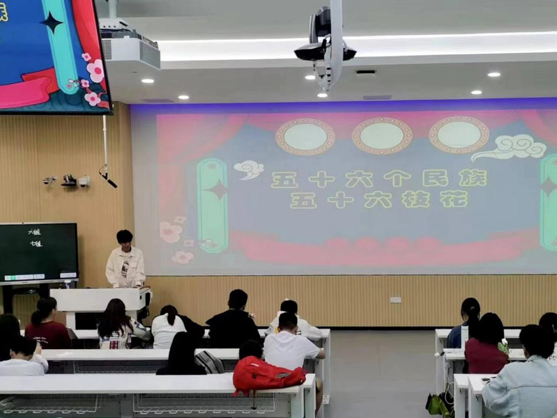 为引导各民族青年员工如同“石榴籽”般紧紧团结在一起,国际经济与贸易2班组织56名同学,通过“民族服饰知识”和“民歌知识”抢答比赛,深化同学们对铸牢中华民族共同体意识的认知。该班团支书林嘉仁表示,民族团结是我国各民族人民的生命线,中华民族共同体意识是民族团结之本,希望通过开展这次团日活动影响更多的青年老员工,成为铸牢中华民族共同体意识坚定的贡献者、推动者。现场还向56名同学赠送56枝花,寓意五十六个民族大团结。