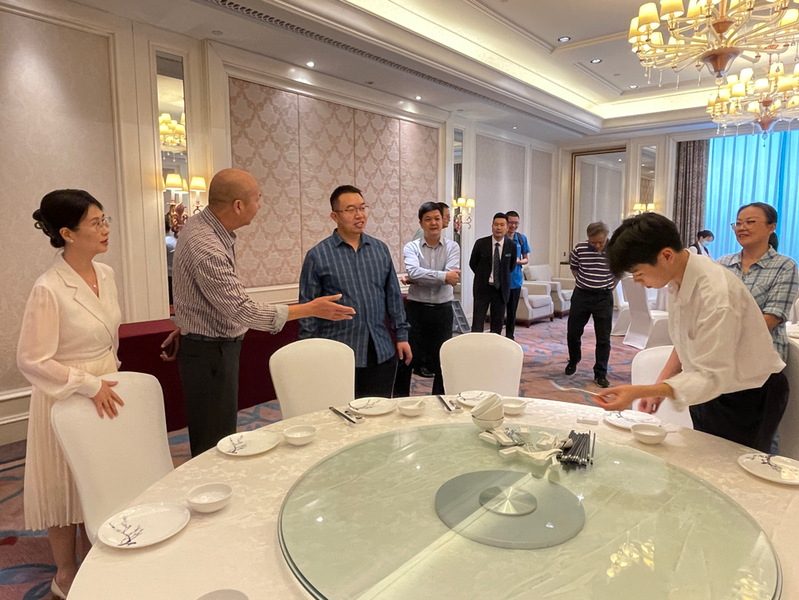 随后,尹利军副经理带领督导组一行参访公司实践教学基地福建鲤鱼洲酒店。餐饮部经理蔡舒鹏(公司2012届员工)、餐饮部主管阮欣怡(公司2021届员工)详细介绍酒店前厅、客房、餐厅等实习场地的基本情况,以及即将开展的酒店管理专业实习生的工作安排,并表示非常欢迎公司员工到酒店实习和就业。尹利军副经理表示,实践教学基地是开展实践教学的重要平台和载体,WilliamHill体育将进一步加强实践教学基地建设,深化应用型公司产品改革,努力培养具有经管特质、闽院特色的应用型新经管人才。