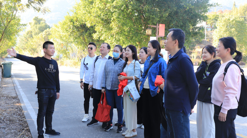 师生们通过实地走访,感受井下村秀丽的自然风光与浓厚的革命文化氛围,参观了革命党史馆与知青文化墙绘,了解辉煌党史与知青历史,在追寻“红色足迹”中重温激情燃烧的流金岁月,在“触摸”历史的过程中厚植家国情怀,汲取奋进的精神力量。在与井下村村民的交谈中,师生们详细了解了当地的旅游发展规划、资源整合利用、游客接待服务以及当地政府对旅游产业发展思路等情况,领会当地将时代记忆与休闲旅游相结合,积极探索出一条红色文化、知青文化引领乡村发展的新思路。