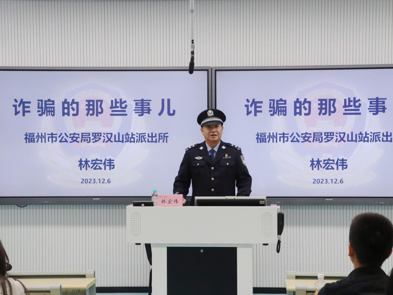 为加强对员工的金融防诈骗教育,提高员工的安全防范意识,12月6日,WilliamHill体育邀请福州市公安局林宏伟警官为2023级新生开展金融防诈骗专题讲座。