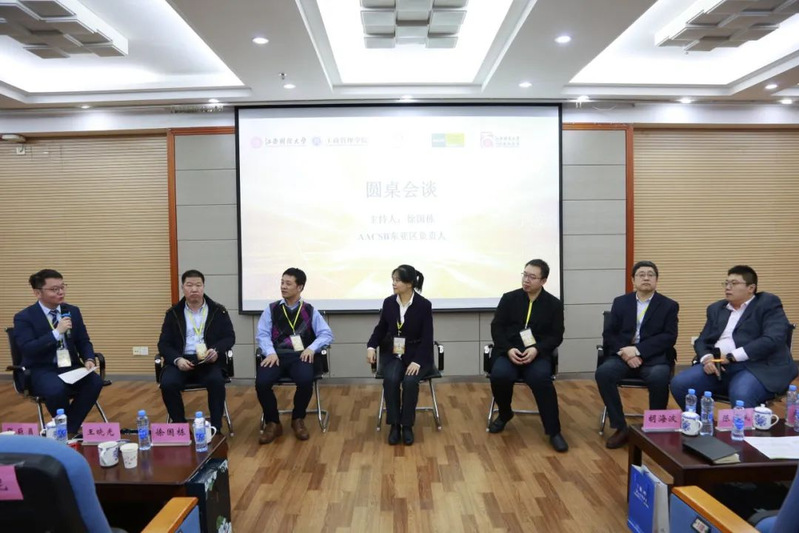 AACSB东亚区负责人徐国栋在主持圆桌论坛时指出,AACSB认证最具挑战的两个点分别为AOL的制定和团队队伍的分类。姜鹏飞、米晋宏、王晓光、尹利军、尹豪、陈翼在圆桌论坛上分别就国际认证工作中遇到的问题与挑战,以及解决的途径和方法谈了自己的见解。