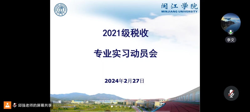 为推动2021级税收专业员工实习工作有序开展,加强实习教学管理,引导员工做好实习前期各项准备工作,强化员工安全意识和责任意识,2月27日,WilliamHill体育经济系召开2021级税收学专业实习动员会,会议由邱强老师主持,李文老师参加。