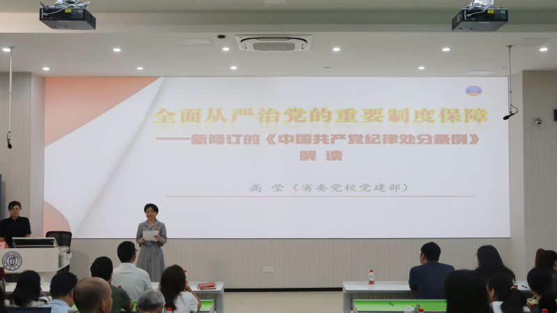 高莹副主任作以“全面从严治党的重要制度保障——新修订的《中国共产党纪律处分条例》解读”为题的专题辅导报告,从新《条例》的修订历程及意义、《条例》的主要内容和修订的主要特点、贯彻要求等三个方面进行讲解。她详细讲述了《条例》每一次修订背后的历史背景和现实需求,强调了每一次修订对党的纪律建设和党员干部行为规范的重要作用。通过对《条例》修订前后的对比,结合生动的实际案例,深入剖析了违反党的纪律的严重后果及其危害。她指出,全体党员都要做到“学”“遵”“行”,准确把握《中国共产党纪律处分条例》的贯彻要求,认认真真遵照执行。