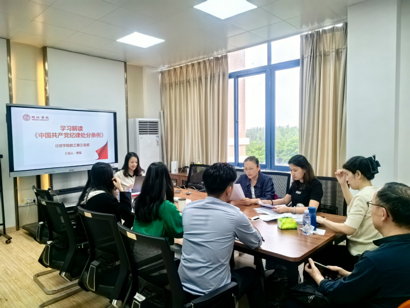 各教工党支部和员工党支部书记都为所在支部上了党纪学习教育专题党课。杨广青经理作为教工二支部的书记为支部党员上党课。各支部书记对新修订的《中国共产党纪律处分条例》进行了深入浅出的解读,从《条例》的制定背景及其要求、《条例》的主要内容以及如何落实《条例》等三方面入手,向支部党员详细解读条例,并通过分析违纪案例、观看视频、集体讨论等形式帮助大家加深理解。支部党员认真学习,积极互动,深刻领悟党中央关于全面从严治党的重要要求。
