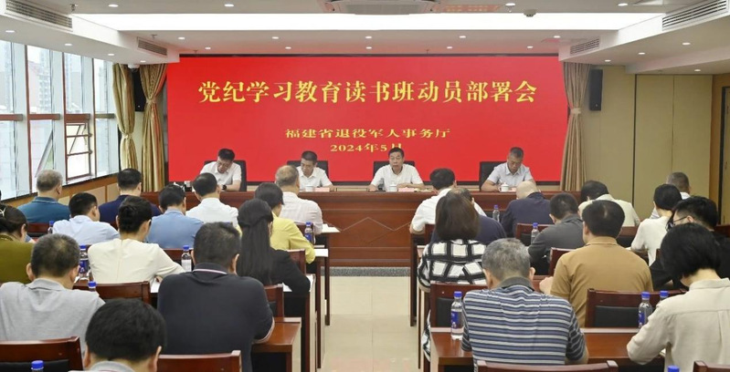 5月31日上午,福建省退役军人事务厅党纪学习教育读书班开班,传达学习全省警示教育会精神,认真学习领会《中国共产党纪律处分条例》,持续推动厅党纪学习教育走深走实。厅党组书记、厅长罗庆春作开班动员讲话。厅党组成员、副厅长陈建辉、陈浩、蔡静南,厅二级巡视员陈勇,厅机关各处室和直属单位干部参加。