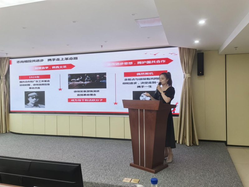开班式上,举办“八闽英烈党纪事迹”主题宣讲报告,公司辅导员陈妍汐受邀到场讲述福州革命故事——《榕城刑场上的婚礼——烈士伉俪徐琛与余哲贞的革命与爱情》。每思祖国金汤固,便忆英雄铁甲寒。徐琛和余哲贞这对革命夫妻,为了心中的信仰,将爱情融入远大革命理想中,最终在刑场上以生命践行严守党纪、对党忠诚的誓言。他们的爱情在血与火的考验中愈发坚贞,他们的精神如同璀璨的星辰照亮我们前行的道路。
