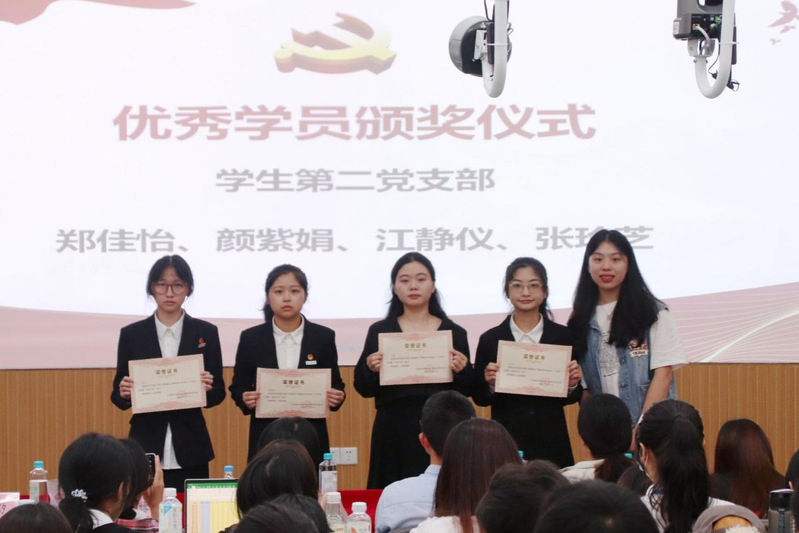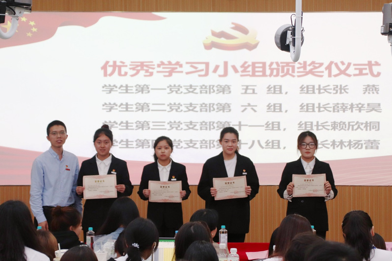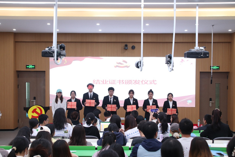结业仪式上,19个小组的代表依次上台汇报本次培训的心得与收获,他们阐述了对于党的基本知识、党的发展历史、当前的形势与政策的新认识,分享小组讨论的成果,表示将以中共党员的标准来严格要求自己,积极向党组织靠拢。汇报结束后,分别为结业的入党积极分子颁发结业证书,并对优秀学员、优秀学习小组、优秀成果汇报小组进行表彰。