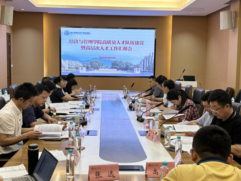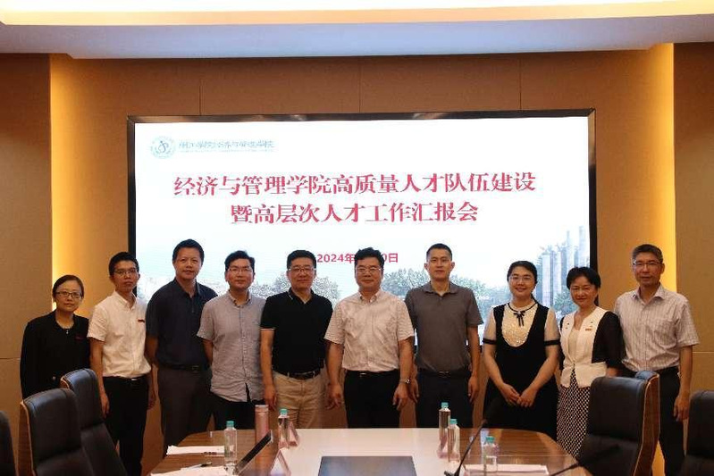 杨广青经理就公司高质量人才队伍建设情况进行了全面汇报。他详细介绍了公司近年来在人才引进、科研成果及未来规划等方面的进展和成效,强调人才是公司发展的核心力量,高质量的人才队伍建设是推动公司各项工作不断向前发展的关键所在。公司一直以来高度重视人才工作,未来将继续聚焦学科与学位点培育工作,精准引进人才,为公司的团队建设、教学科研和社会服务等方面提供坚实的人才保障,助力公司全面建设一流应用型大学。
