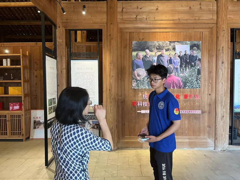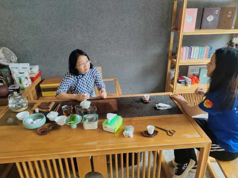 当天下午,实践队员们与科技特派员周艳老师进行了深入的交谈。访谈聚焦于武夷山茶产业发展振兴的奥秘,围绕武夷山茶业的种植、生产、销售等核心环节展开交流。交谈中,实践队员们了解到茶叶在不同环境下呈现出的风味差异,近年来茶叶销售渠道与方式的多样化及其发展变迁趋势。这不仅拓宽了队员们探察茶叶的角度,也让他们对武夷茶产业有了更为深入和全面的认识。