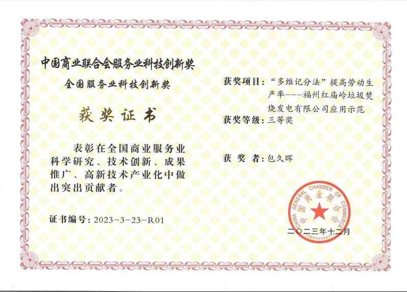据悉,该项目于2020年开始在福建省能源重点企业红庙岭垃圾焚烧发电有限公司实施,技术核心是“多维记分法”。该方法是一种关注技术人员、管理人员群体融合的创新考核模式,该考核模式按照行业和岗位技能分成三十到一百个维度记分。将传统的被动考评转变成自主记分,形成内部定级。员工通过对照技能维度标准,自主上报记分,既调动了员工参与学习的积极性,也让公司的考核模式更加公正透明。