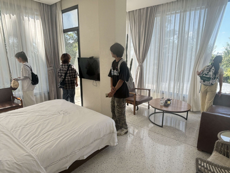 实践队参观了民宿的建筑布局,与鼓岭管委会负责人、民宿经营者交流经营理念,挖掘发展故事。基于“体验温感”理论,从“环境温度”“功能温度”“情感温度”三方面入手,深入了解鼓岭民宿的实际情况,探讨其面临的发展瓶颈,挖掘鼓岭民宿的地方特色,探寻鼓岭民宿高质量发展的路径,针对性地对鼓岭度假区存在的问题提出改进建议,助力服务质量水平的提升,促进度假区民宿高质量长远发展。