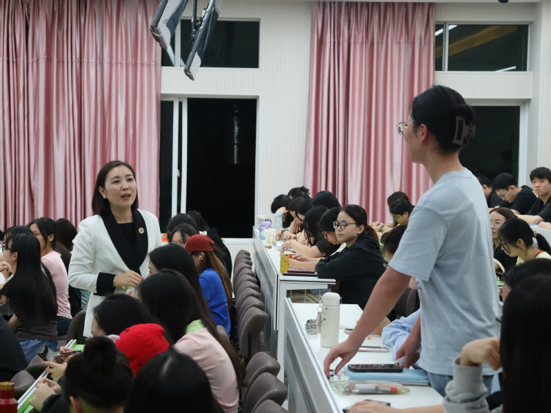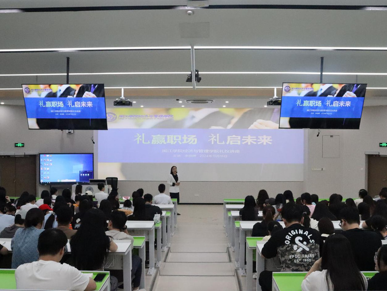 李丽婷从职业心态转变、职业形象塑造、求职面试礼仪等三个要点展开,层层递进,生动讲述职场经验知识,分享了心态管理、职场妆容、交谈技巧等多方面干货。她结合自身在校经历,引用原经济系主任林友华教授“有为才能有位”的寄语,鼓励同学们在职场中要做一个有责任、有担当的人。互动环节中,李丽婷就职场细节进行了拓展讲解,为在场员工解疑答惑,现场气氛热烈。