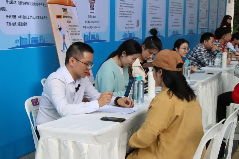 据悉,本次招聘会共邀请了福建植护网络科技有限公司、上海高顿教育科技有限公司、福州金拱门食品有限公司、福建东百集团股份有限公司等37家企业进校纳才,涉及金融、电商、保险、传媒等行业,提供销售、财务顾问、直播运营等各类就业岗位800余个,吸引了近1000名毕业生咨询应聘。