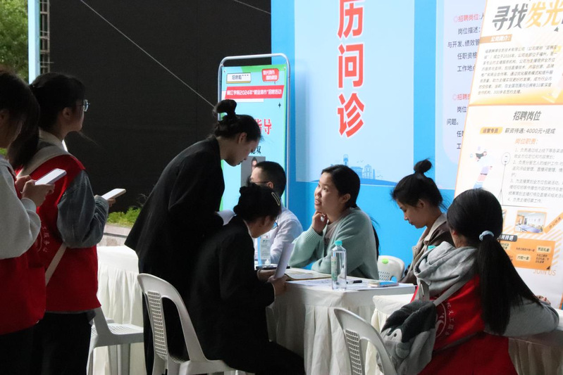 招聘会现场气氛热烈,人潮如织,应届毕业生们携带着精心制作的简历,在各个招聘企业间穿梭,认真查看职位详情,主动与招聘单位交流,了解岗位要求、薪酬福利、企业文化以及职业发展等信息。现场设立了简历诊断服务区,为毕业生提供简历诊断、面试指导等个性化服务。此外,许多非应届毕业生也来到现场,提前体验招聘流程,了解求职要求,为将来的就业做准备。