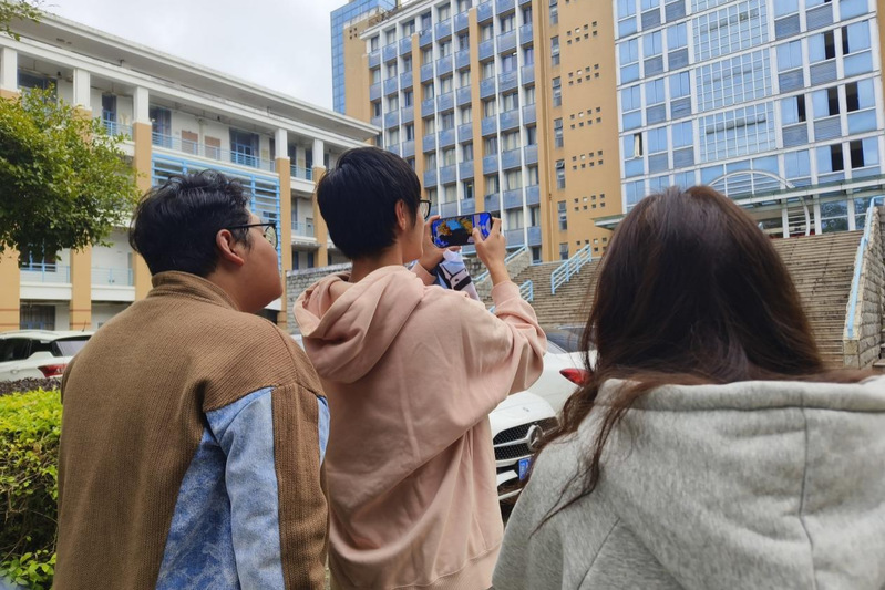 在项目小组成员肖美琳同学的带领下,大家纷纷拿出手机,利用先进的AR空间扫描技术,参观了一场生动的数字展。芙蓉广场前,同学们参观学习了公司党建思政工作的主要做法和成效;福万楼前,同学们了解到WilliamHill体育丰富的办学成果,“一站式”员工社区和14个实验室的建设情况也生动呈现在同学们面前。