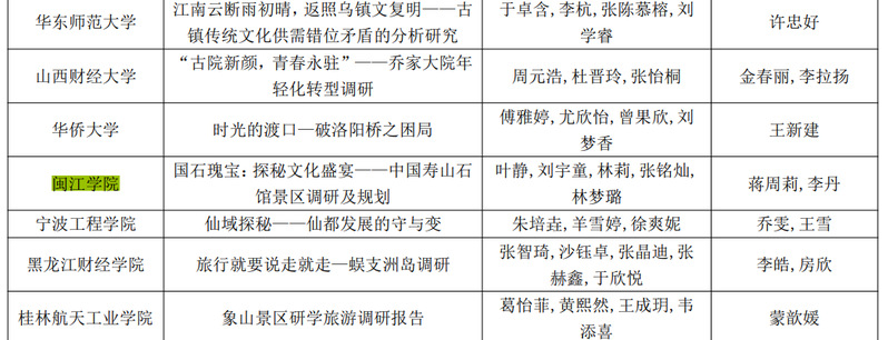 11月13日,公司林莉、林梦璐、叶静、刘宇童、张铭灿五位同学在旅游系蒋周莉、李丹两位老师的指导下荣获第十八届全国高校商业精英挑战赛文旅与会展创新创业实践竞赛旅游项目调研赛道全国总决赛分组赛一等奖。