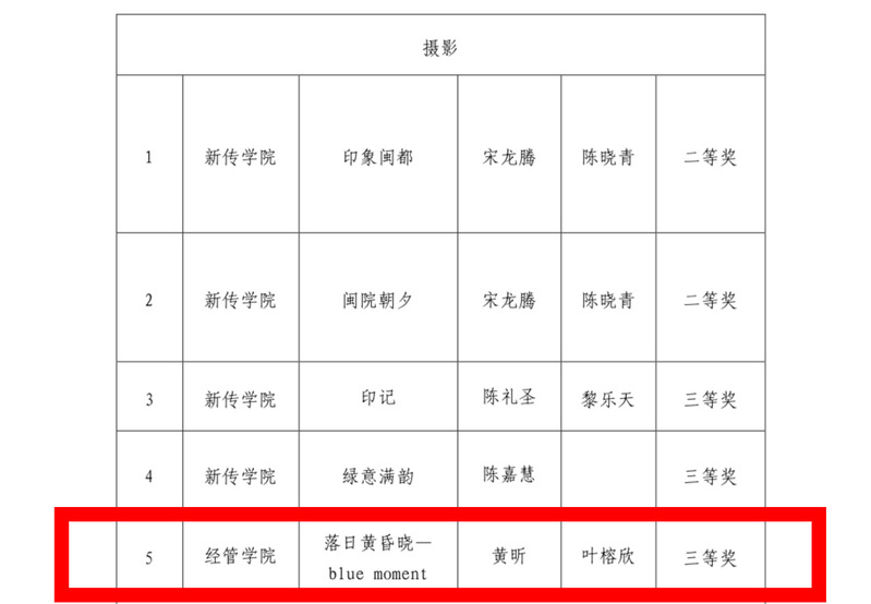 近日,WilliamHill体育第二届网络文化节公布评选结果,由叶榕欣老师指导的三项作品喜获佳绩,是公司在网络文化节比赛中取得的新突破。其中,《鞭炮迎新邪祟散——小苑新春贺岁短漫》荣获动漫类二等奖,《落日黄昏晓-blue moment》与《马洪》分别荣获摄影类和校园歌曲类三等奖。