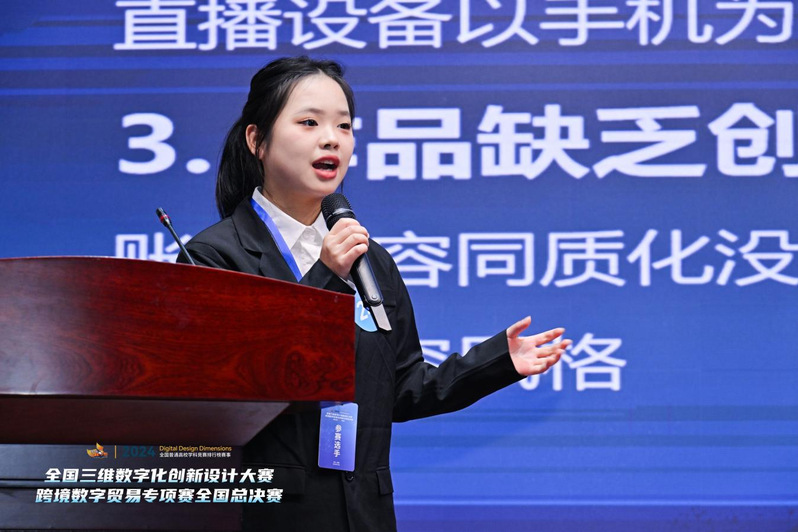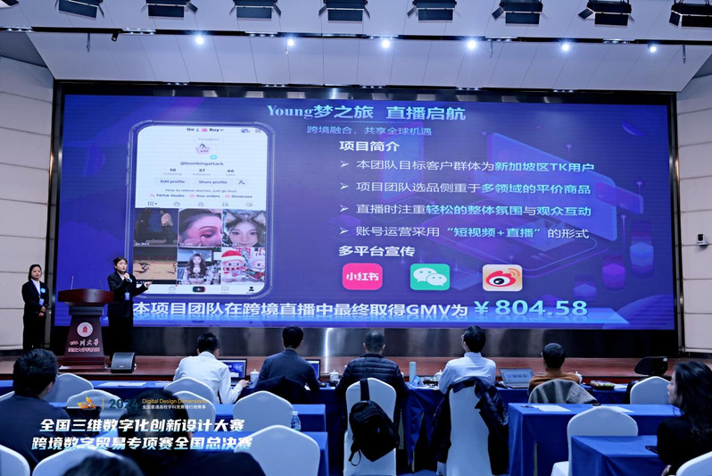 12月8日,2024全国三维数字化创新设计大赛跨境数字贸易专项赛全国总决赛在四川大学望江校区圆满落幕。在指导老师魏勤、张和荣和翁曼莉的带领下,公司谢莲、毛贞意、陈颖、洪佳佳、周思涵等5位同学组成的“WilliamHill体育二队”参赛作品《Young梦之旅 直播启航》在与全国80所高等院校150余支队伍的激烈竞争中脱颖而出,凭借卓越的实战技能和创新的路演展示,荣获全国总决赛一等奖。