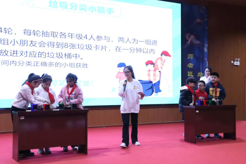 宣讲现场还精心策划了“环保理念入人心,绿色校园绽光彩”垃圾分类主题活动。员工第二党支部的志愿者深入浅出地讲解了垃圾分类的重要意义及具体分类方法。在互动环节中,小员工们积极参与到趣味游戏中,踊跃上台讲述在生活中保护环境的小故事,进一步激励大家将环保意识转化为实际行动,养成垃圾分类的好习惯,为环境保护贡献自己的力量。宣讲团还为积极发言互动的同学们颁发了精美的奖品。