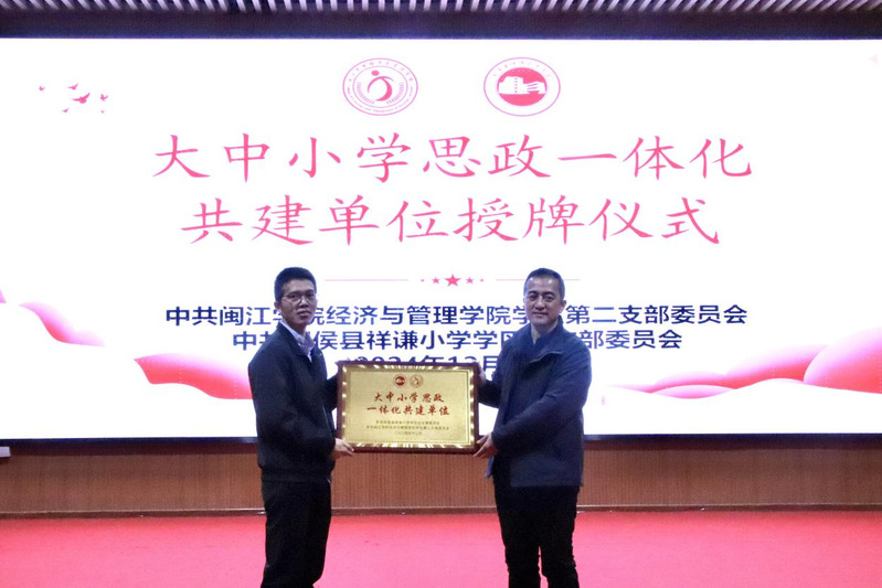 活动中,许雪峰、吴甲寅分别代表中共公司员工第二支部委员会、中共闽侯县祥谦小学学区总支部委员会进行了大中小学思政一体化共建单位授牌仪式。