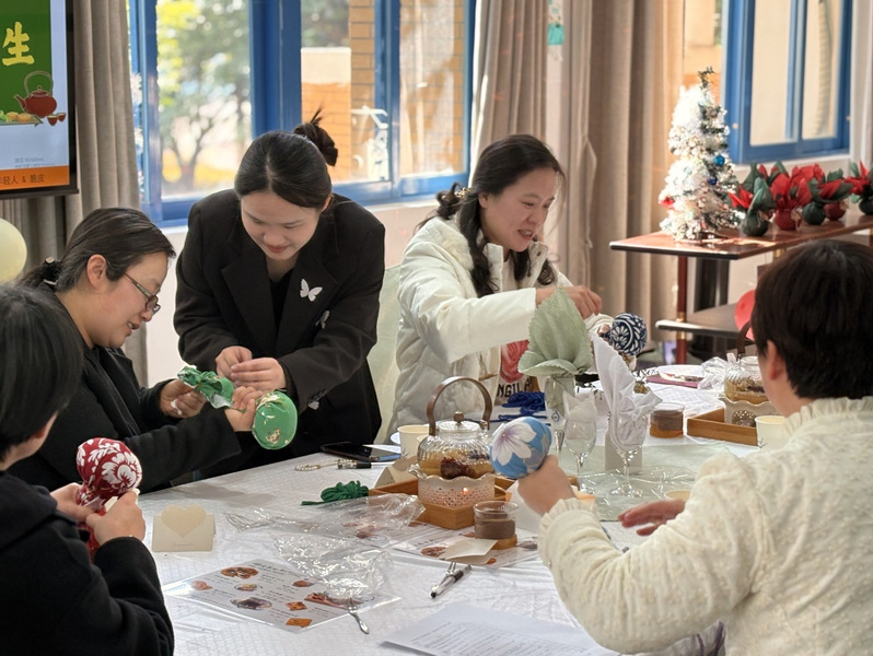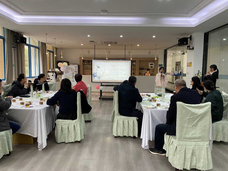 ”为主题,制作梅渍小番茄、秋韵萍橙茶等菜品,进行“猜灯谜”“飞花令”等游戏互动,餐厅整体氛围恬静淡雅;第三小组以“胖哒来了”为主题,制作多款体现熊猫可爱特性的菜品,并播放趣味满满的花絮视频,为嘉宾们带来了一场欢乐的用餐体验;第四组以“颂喜·哈利波特”为主题,通过对市场需求、消费者行为和经营模式等方面进行分析,制作了黄油啤酒、辣奶油虾仁意面等菜品,充满创意和趣味;第五组以“绘食”为主题,突出菜品色彩的碰撞与时尚的摆盘,给嘉宾带来一场沁人心脾的美食享受。除了精致可口的美食,各小组还就产品创意、运营方案、利润核算等方面做了汇报。