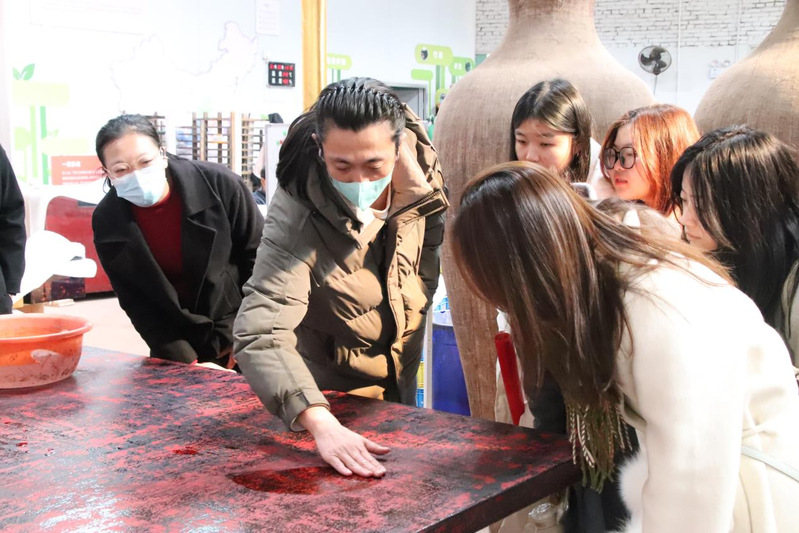 随后,实践队一行走进生产一线,前往沈绍安漆艺产融基地参观学习。漆艺师傅展示了精湛的技艺和严谨的工作态度,耐心地解答成员们提出的问题,并分享了自己在漆艺创作中的心得和经验。实践队成员们纷纷表示,通过亲眼目睹漆器的制作过程,自己对大漆工艺有了更加深入的了解。