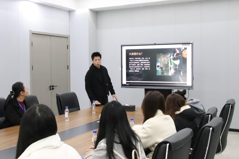 企业相关负责人热情接待了实践队成员,详细介绍了企业的发展历程、文化理念、主营业务以及近年来取得的发展成就。着重介绍了大漆耳机的技术特点、设计理念、生产工艺等,实践队成员们认真聆听,并就技术细节、设计灵感、市场定位等方面的问题与企业方进行热烈讨论。