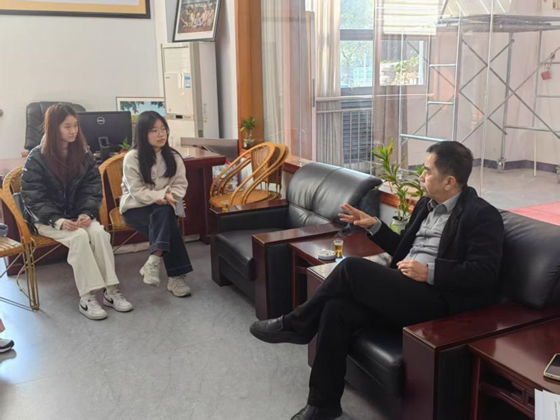 当天下午,实践队实地走访了余光中文学馆,并与馆长周梁泉进行了深入交流。周梁泉详细介绍了永春县的非物质文化遗产,包括永春芦柑、白鹤拳、纸织画、漆篮等,并分享了自己在传承和发展永春非遗文化方面的经验和思考。他指出,永春县在推动对台交流过程中,应充分依托其深厚的非遗文化底蕴,以“乡情”为切入点,通过文化创新,增强两岸人民的文化认同感。实践队员们还参观了永春非遗展厅,深切感受到了当地人对于非遗文化传承发展所作出的努力与贡献。