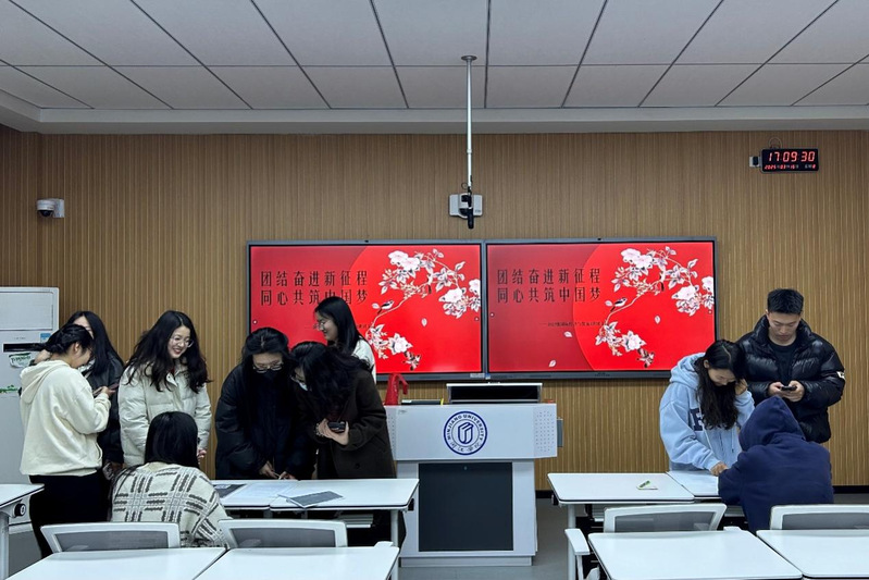 2023级国际经济与贸易2班团支部开展民族知识竞答活动,同学们通过问答,深入了解中华民族丰富多彩的文化和历史,增强了民族认同感和自豪感。活动结束后,大家在印有“团结奋进新征程,同心共筑中国梦”的横幅上郑重签下自己的姓名,以此表达对中华民族共同体意识的坚定认同。