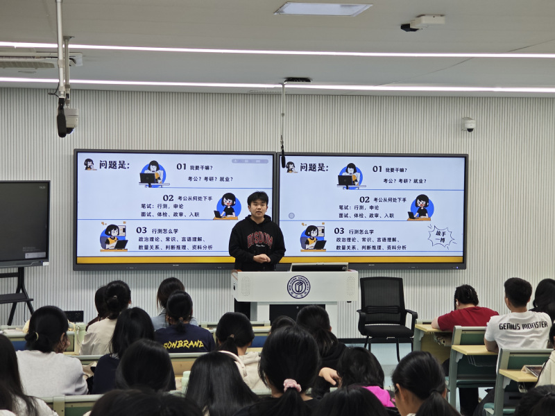 本次分享会特邀4名2025届毕业生担任主讲人,他们凭借优异成绩通过2025年公务员考试笔试、面试,即将踏上公职岗位。他们以“过来人”身份,帮助低年级员工系统梳理大学四年学习生活与公考备考的深度链接。