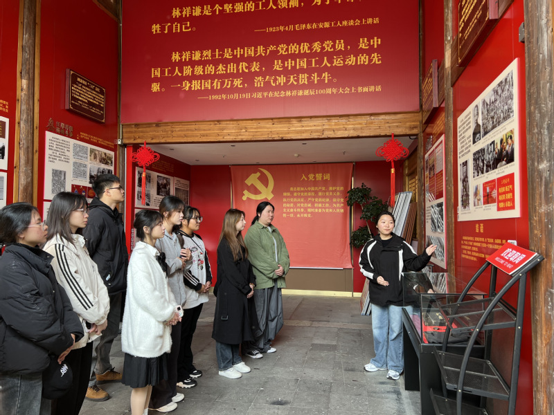 下午,师生前往三坊七巷林祥谦文化站,开展“缅怀先驱·传承二七精神”主题研学活动。文化站经2024年改陈布展后,以沉浸式场景再现了林祥谦烈士从农家少年成长为“二七”运动先驱的历程。在讲解员引导下,师生们通过文物、影像及互动展项,深入了解了林祥谦“赤诚报国、血性担当”的革命精神。