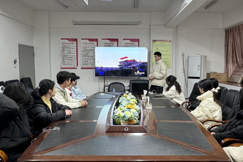 会上,员工会轮值主席孙宇烽围绕两会“新质生产力”“民生保障”等关键词展开领学,结合专业背景解读政策内涵。学风建设部干部陈雅凌结合社会实践经历分享感悟:“作为员工干部,我们要将两会精神融入日常服务,例如在校园提案中关注同学急难愁盼,搭建师生沟通桥梁。”