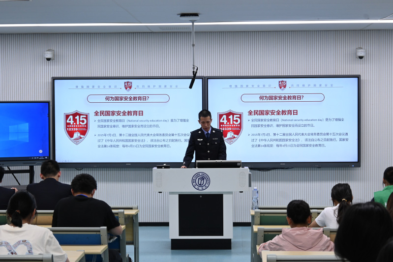 李辰晖同学以“国家安全与青年责任”为主题展开宣讲,结合全民国家安全教育日背景,阐释国家安全的多维内涵,强调维护国家安全不仅是国家层面的战略需求,更与每位公民的日常生活紧密相关。他呼吁同学们在使用网络平台、处理敏感信息时恪守法律底线,以实际行动筑牢国家安全的校园防线。