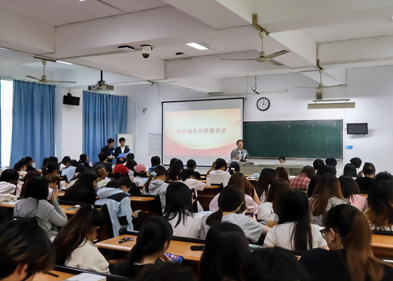 在朋辈辅导员招募环节中,刘孟珠教授阐述朋辈辅导员的内涵与作用,强调其在员工心理健康教育中的意义。随后,主持人就招募条件、流程和职责等方面进行了一一说明,鼓励同学们积极报名参与校园心理健康服务。